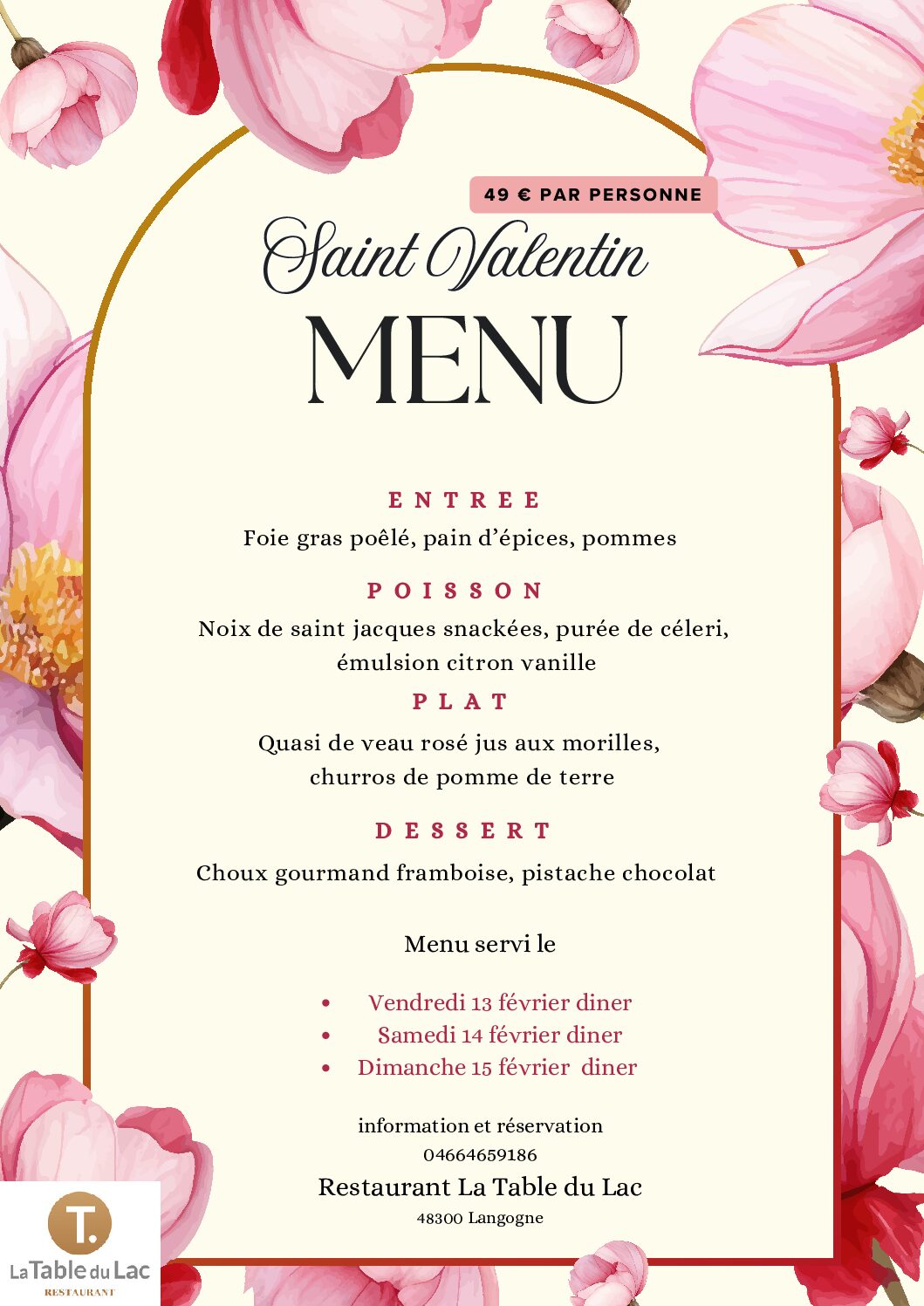 La Saint-Valentin approche à grands pas, et c’est l’occasion idéale pour partager un moment inoubliable avec votre bien-aimé(e). Cette année, laissez-nous vous transporter dans une ambiance romantique avec notre menu spécial pour célébrer l’amour.